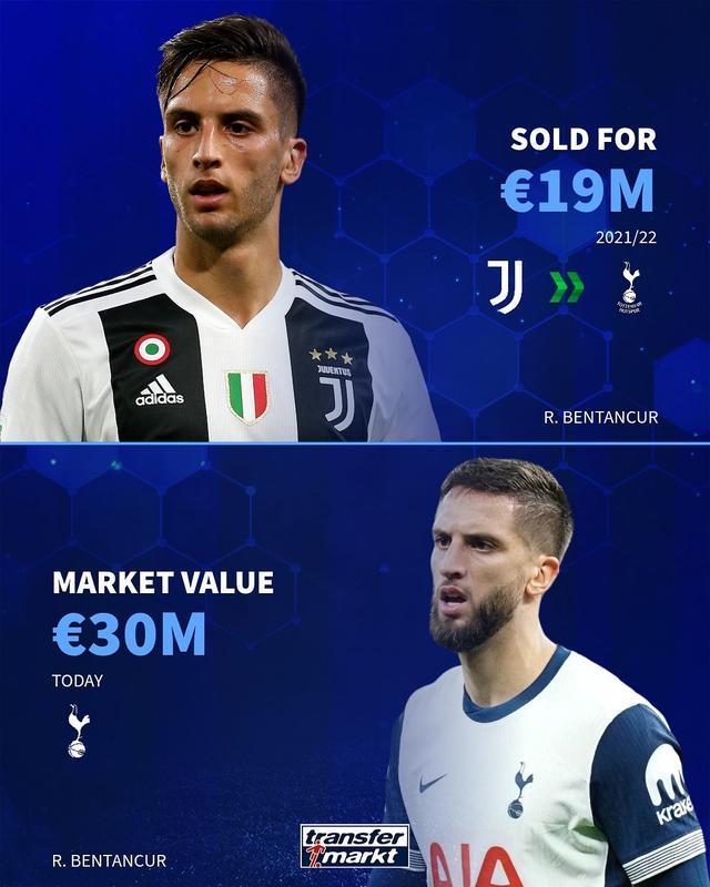 德转列近年离开尤文后身价上涨的球员: